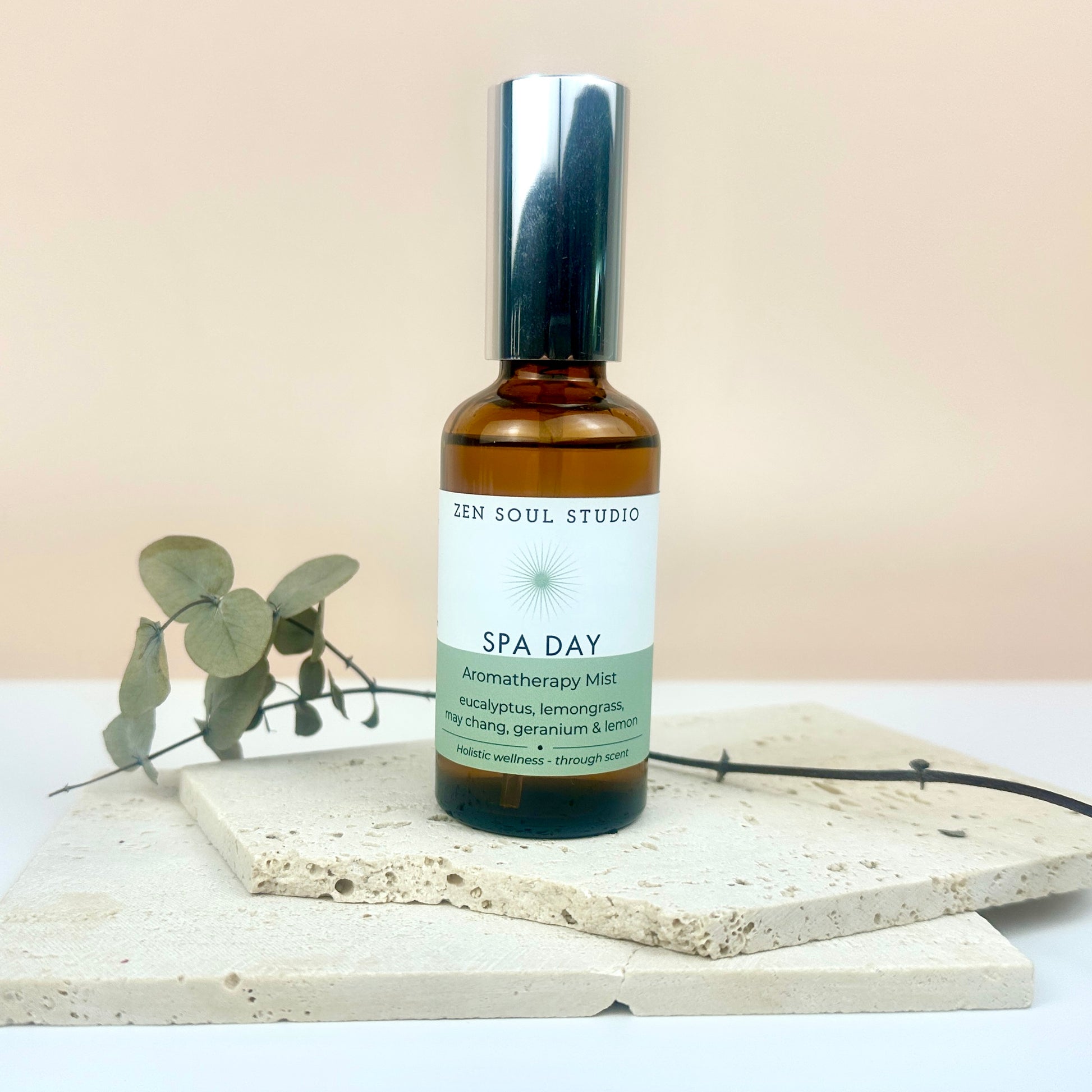 Spa Day is your escape in a bottle—a refreshing blend that gently clears the mental clutter and uplifts the senses. It's the scent of crisp white towels, spas and saunas, take a deep breath, and hear the gentle hum of stillness. Use this mist when you want to return to yourself, refreshed, renewed, and beautifully balanced.