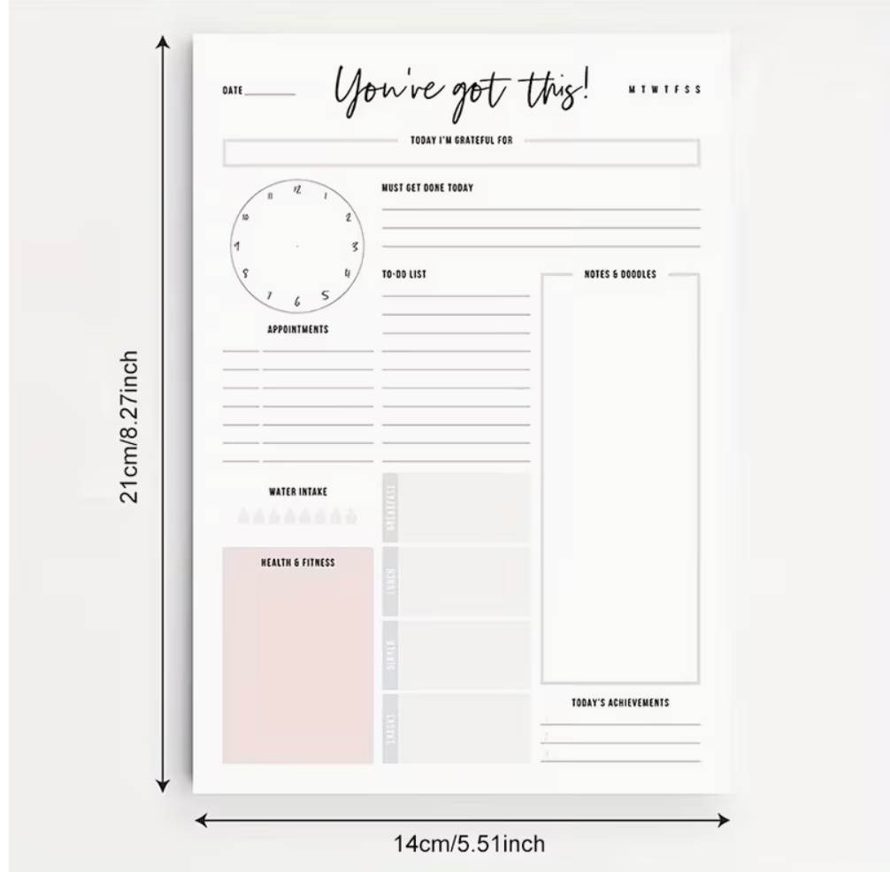 This is not just a planner—it’s a daily pause. A place to notice small wins, listen inward, and appreciate the rhythms of your day. Tear off each page as a reminder that today was enough.